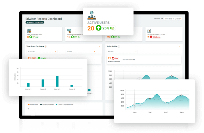 Easily monitor learner progress & the effectiveness of your courses to drive student engagement with Edwiser Reports